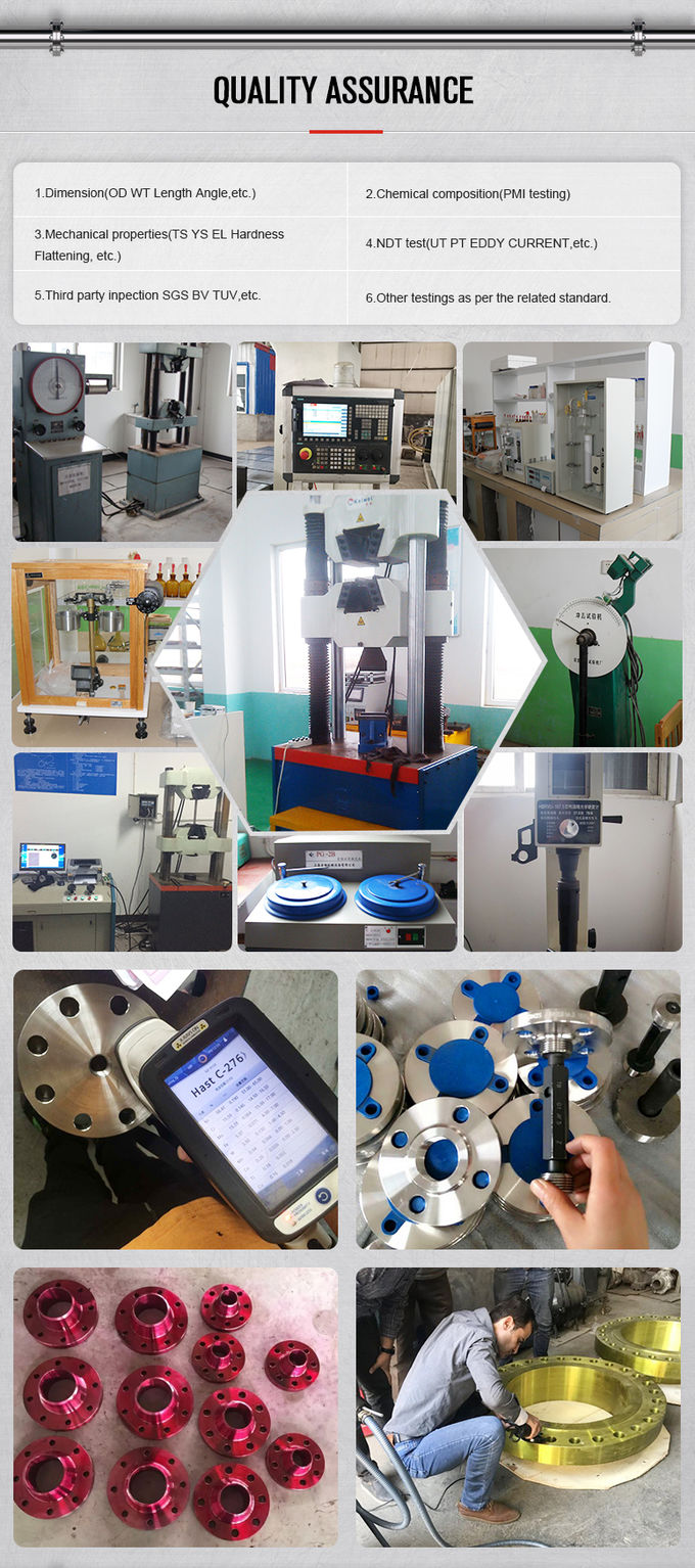 نحن نقدم الشركة المصنعة TC (شهادة اختبار) وفقًا لـ EN 10204 / {1}}. 1 B ، شهادة المواد الخام ، 1 00٪ اختبار الأشعة السينية ، تقرير فحص الطرف الثالث. نقدم أيضًا شهادات قياسية مثل EN 10204 {{1}}. 1 ومتطلبات إضافية مثل. NACE MR 0 1 075. محتوى FERRIT حسب المعايير إذا طلب العملاء ذلك.